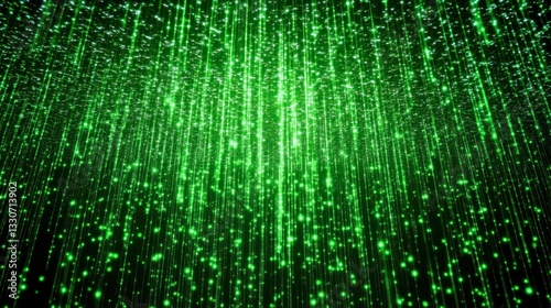 Green Digital Rain with Glowing Particles in an Abstract Background