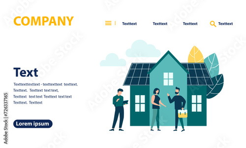 Green energy, environmentally friendly house. energy from solar panels and windmills, concept to save nature. web banner, mobile website, Landing Page Template