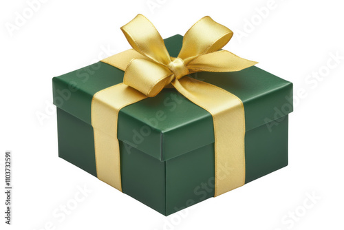 Green Gift Box with Gold Ribbon Bow Isolated on Transparent Background