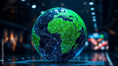Green Globe with Blue Lines & Dots - Futuristic Abstract Art - AI Image