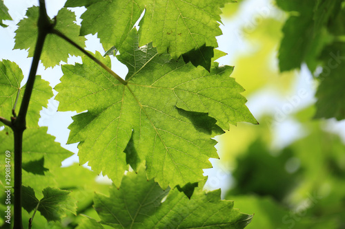 Green grape plant with green leaf, red root, fresh green and red grape for eating or making wine