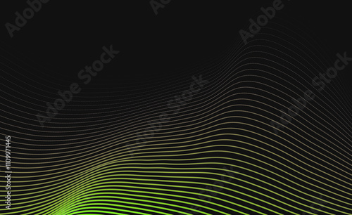 green halftone abstract wave with dark background. Abstract green dots background with waves for banner. Medium banner size. background illustration with lines.