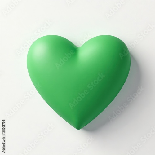 Green heart on white, minimal Valentine's design Ample copy space , stylish, february