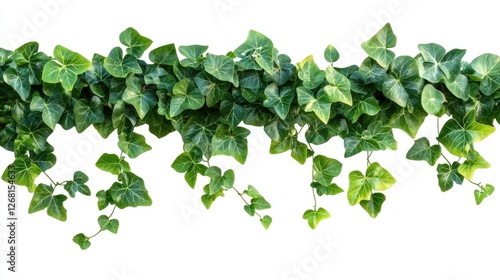 Green Ivy Leaves Hanging from a Branch Against a White Background