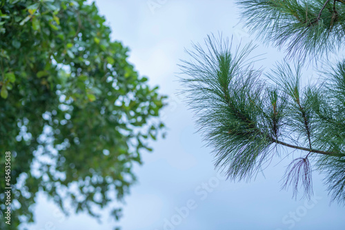 green leaf frame with blue sky and white clouds background, can be used as wallpaper