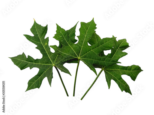 Green leaf or green leaves on white background. Cnidoscolus aconitifolius leaf Isolated on white background.