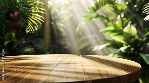 Green leaf solid wood product display stand, abstract Internet e-commerce product display background