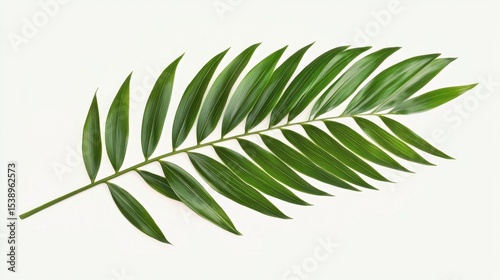 Green leaf with elongated shape and symmetrical leaflets on a light background
