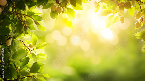 Green Leaves and Sunlight with a Soft Blurred Background