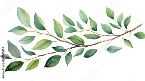 Green Leaves Branch on White Background for Nature Concepts and Design Projects