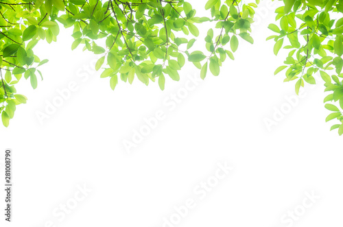 green leaves isolated white background with clipping path. nature frame for decoration design.