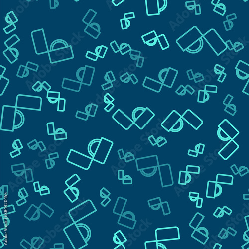Green line Diamond engagement ring icon isolated seamless pattern on blue background. Vector.