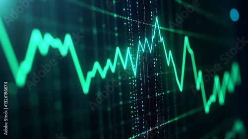Green Line Graph Displaying Fluctuating Data Trends on Dark Background for Business and Finance Analysis