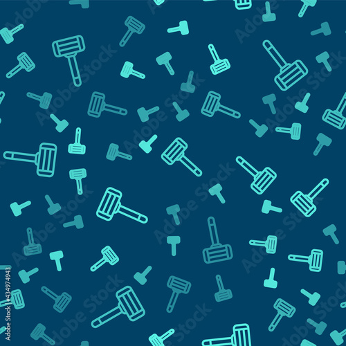 Green line Shaving razor icon isolated seamless pattern on blue background. Vector