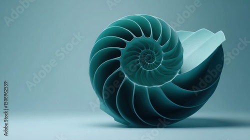 Green nautilus displaying a double spiral structure that exemplifies nature's intricate design patterns