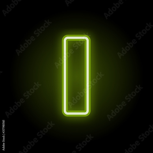Green neon letter I with glow on black background. Blur effect is made with mesh. Vector illustration