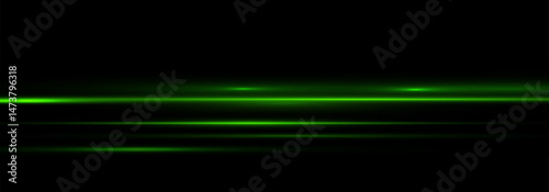 Green Neon Light Trails with Glow Effect and Motion Lines. Abstract Streaks, Starburst Shine, Sunshine Beam, and Transparent Light Flare Overlay for Sci-Fi or Futuristic Vector Design