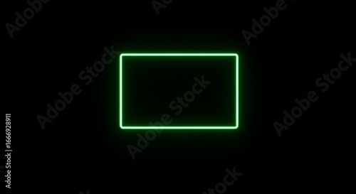 Green neon rectangle glows on black. Minimal, graphic style for branding, website, poster.