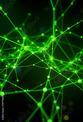 Green network connection structure. Science background. Abstract digital background. Big data visualization. 3d rendering, Diffused lighting, with white tones