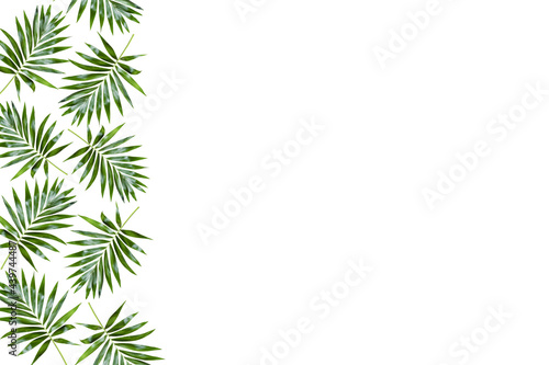 green palm leaf branches on white background. flat lay, top view