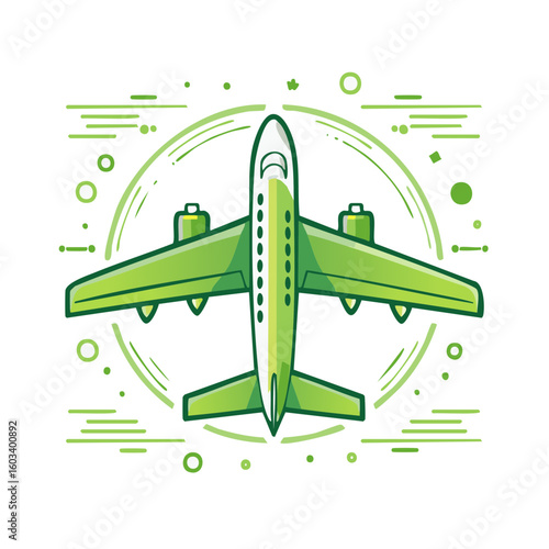 Green Plane Illustration Icon Design Green Circles Around Airplane Flying