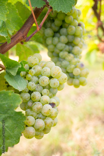 Green riesling wine grapes growing on vine, vineyard in Trier, Moselle Valley Germany, landscape and agriculture, rhineland palatine