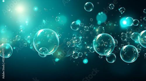 Green Soap Bubbles on Blue Background, Abstract Image, Texture, Pattern, Wallpaper, Cover and Screen of Smartphone, Cell Phone, Computer, Laptop, 9:16 and 16:9 Format