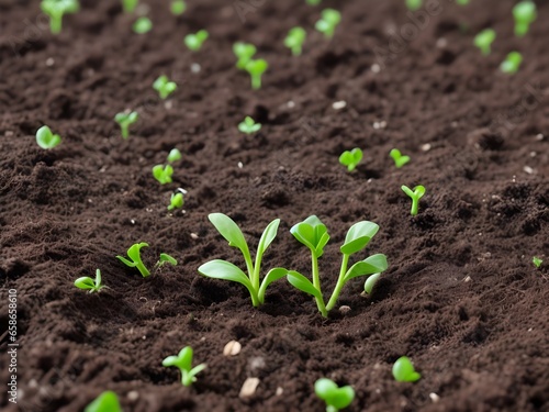 Green sprouts in dark soil
