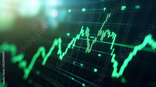 Green Stock Chart Investment Growth Graph on Screen, Finance ,Data analysis