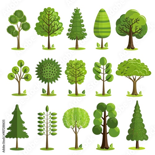 Green summer forest tree flat vector icons