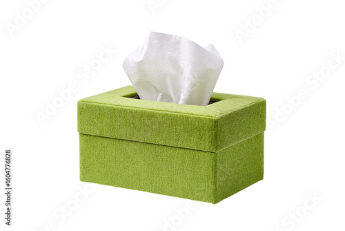 Green tissue box with white tissues isolated on transparent background