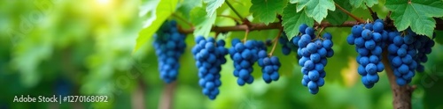Green vine with ripe blue grapes hanging down, hanging, vine, blue