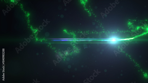 Green Wavy Lines of Light with Turbulence Particles and Lens Flare, Widescreen 4K Resolution
