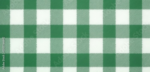 Green, white checkered fabric illustration. Plaid pattern cloth. Gingham check texture. Seamless design for tablecloth, picnic blanket wallpaper. Perfect backdrop for textile, fashion print projects.