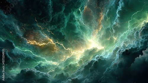 Green yellow lightning background with dramatic electric energy burst, powerful nature force concept for design ads