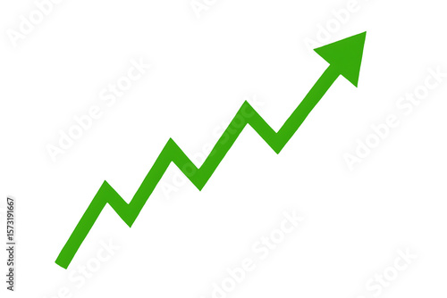 Green zigzag arrow pointing upwards showing growth and positive trend on a transparent background