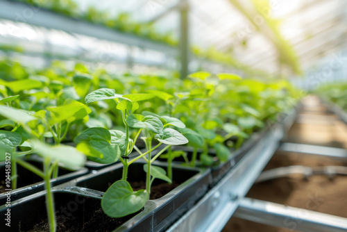 Greenhouse filled with hybrid plants, showcasing the results of genetic modification and selective breeding, reflecting advancements in horticulture, crop improvement, and agricultural technology