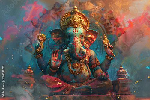 Greeting card with bright holiday composition for Ganesh Chaturthi