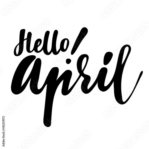 Greeting card with phrase Hello April . Vector isolated illustration: brush calligraphy, hand lettering. Inspirational typography poster. For calendar, postcard, label and decor.