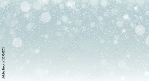 Grey blurred winter banner with snow. Template for Christmas or New Year decoration. Vector background.