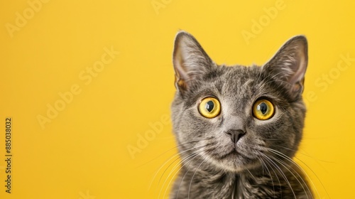 Grey Cat with Expressive Eyes on Abstract Yellow Background - Ideal Wallpaper