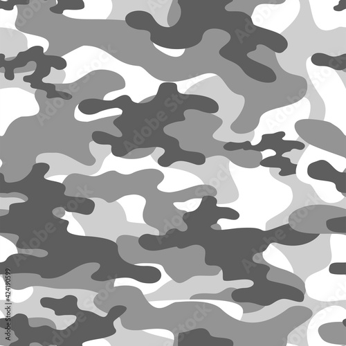grey Classic camouflage seamless pattern. Military texture. Fabric design. Print on paper. For vinyl, textile. Vector