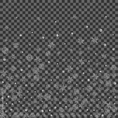 Grey Confetti Background Transparent Vector. Snow Isolated Illustration. Silver Flake Light. Luminous Frosty Card.