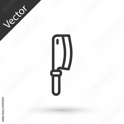 Grey line Meat chopper icon isolated on white background. Kitchen knife for meat. Butcher knife. Vector