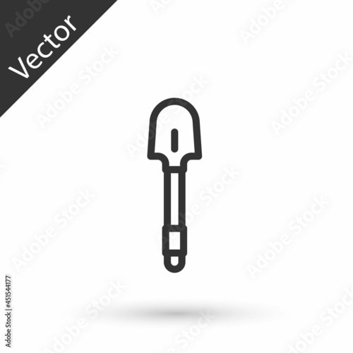 Grey line Shovel icon isolated on white background. Gardening tool. Tool for horticulture, agriculture, farming. Vector