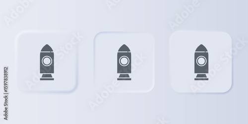Grey Rocket ship icon isolated on grey background. Space travel. Set icons in square buttons. Vector