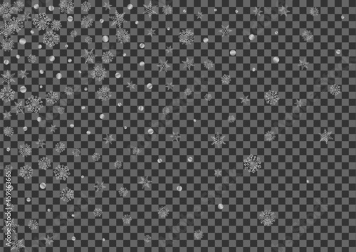 Grey Snowflake Background Transparent Vector. Flake Elegant Card. Metal Confetti Luxury. Luminous Decoration Pattern.
