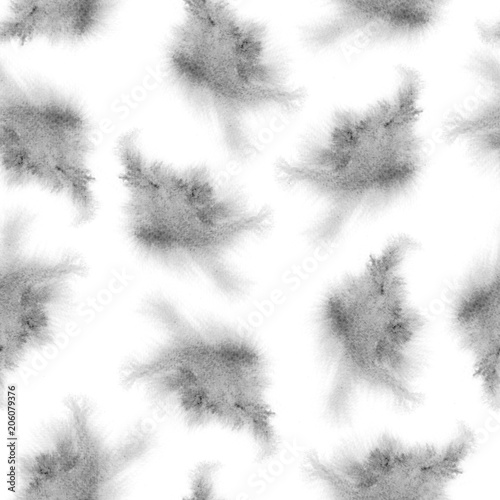Grey splashes pattern. Watercolor abstract seamless pattern. Background with scattered grey splashes and stains. Hand painted interesting tile of loose expressive paint blots. 69.