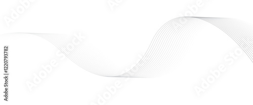 Grey Wave Swirl, frequency sound wave, twisted curve lines with blend effect. Abstract grey wave lines on transparent background
