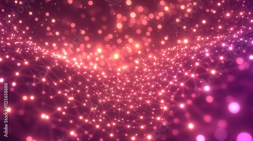 Grid surface. Abstract science or technology background of quantum computing system with a cyber network grid connected particles. Artificial neurons, global data connections. Big data visualization